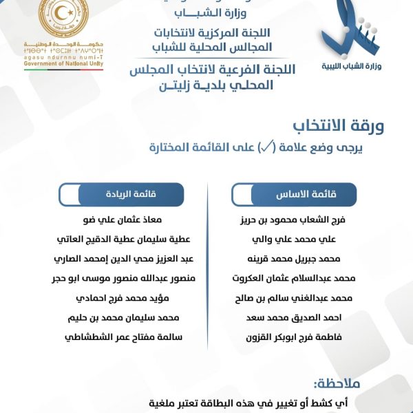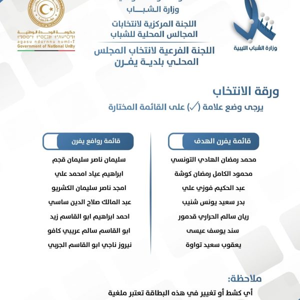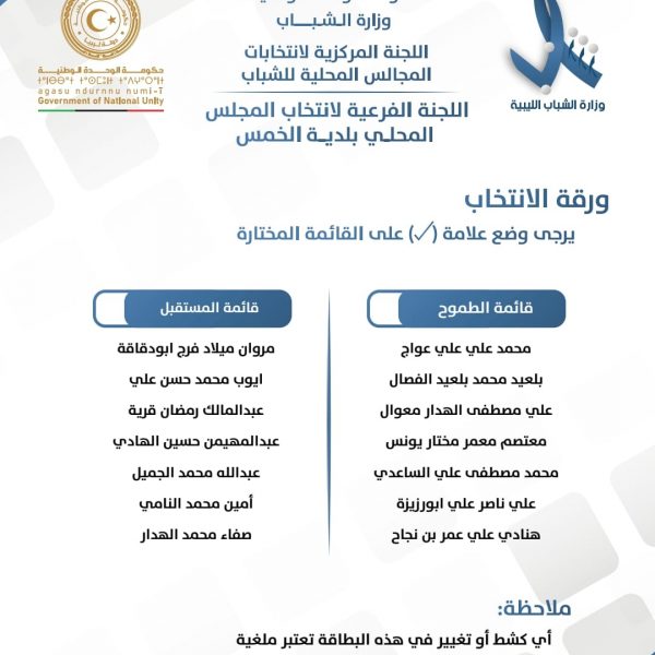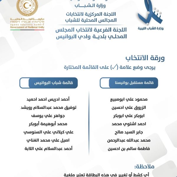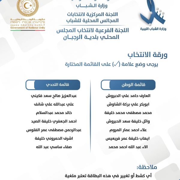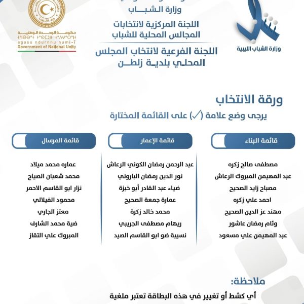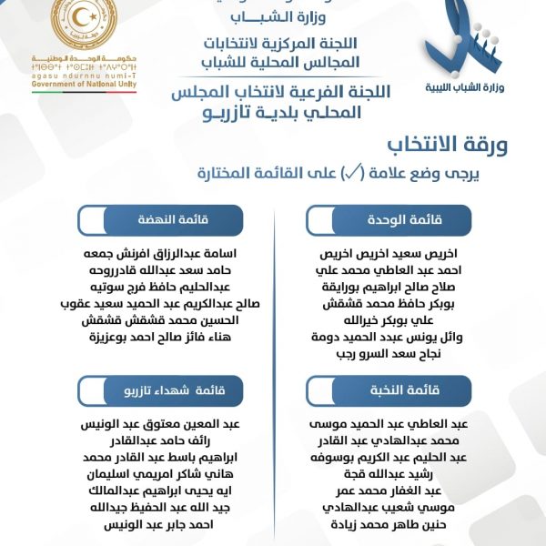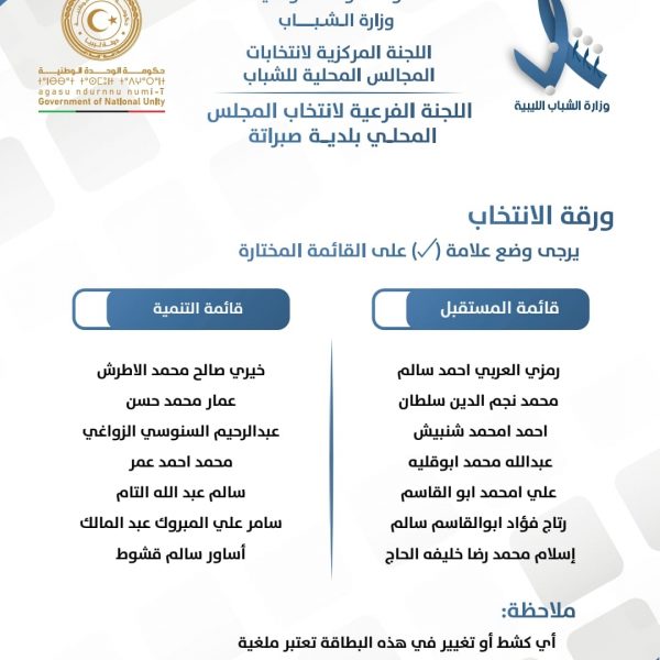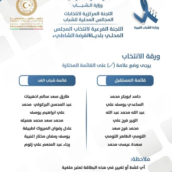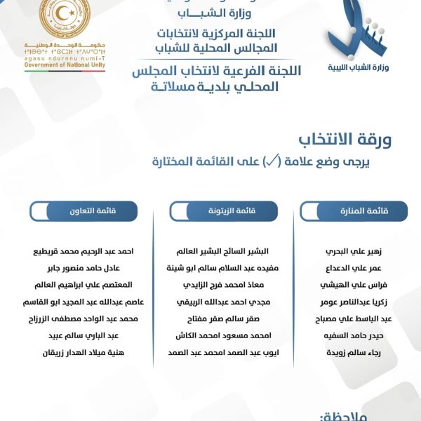 اللجنة المركزية لإنتخابات المجالس المحلية للشباب تعلن عن قوائم المترشحين لإنتخابات المجالس المحلي للشباب لبلديات