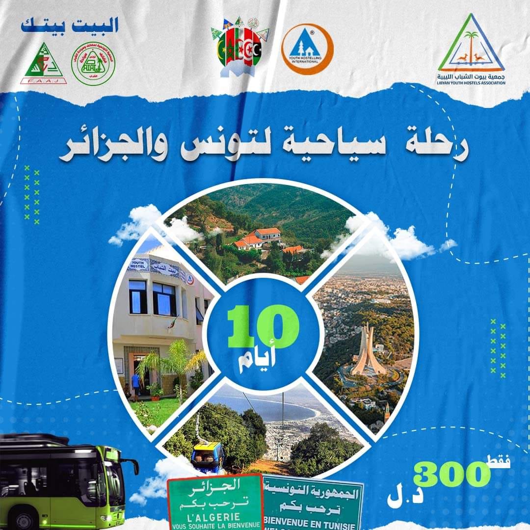 تعلن جمعية بيوت الشباب الليبية بالتنسيق مع الفيدرالية الجزائرية لبيوت الشباب والجمعية التونسية لمضائف وسياحة الشباب عن إطلاق برنامج (البيت بيتك) عبر قوافل شبابية لمنتسبي الجمعية وذلك لزيارة أهم الأماكن والمعالم السياحية والثقافية في الجمهورية التونسية والجمهورية الجزائرية الديمقراطية الشعبية.
