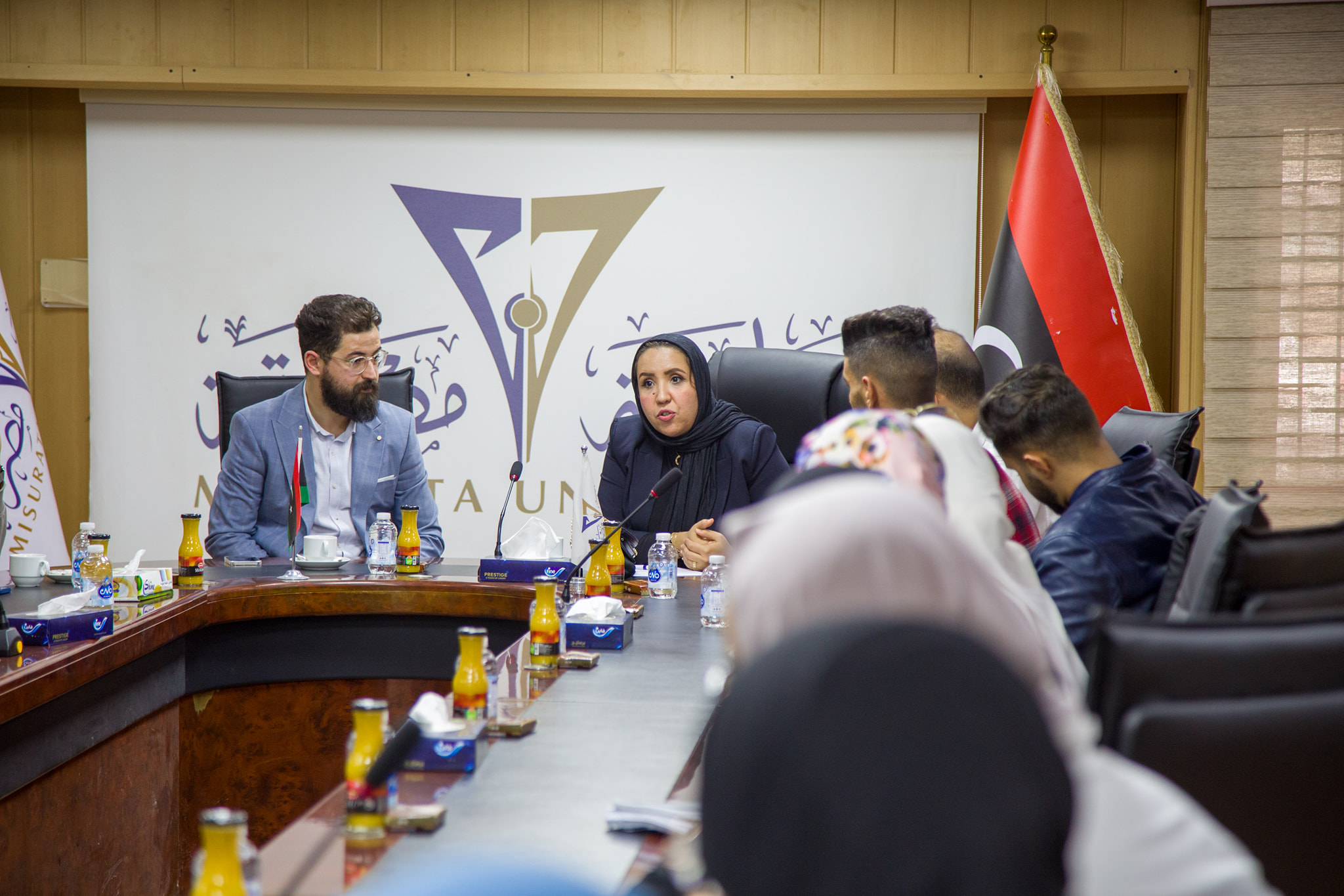 ضمن البرنامج الوطني منصات الحوار للشباب، عقدت المهندسة رندة غريب وكيل وزارة الشباب لشؤون التخطيط والتطوير يوم الأمس الأحد لقاءً بالسيد مصعب قصيبات رئيس اتحاد عام طلبة ليبيا وبحضور عدد من رؤساء النقابات الطلابية والنشطاء الشباب بجامعة مصراتة.