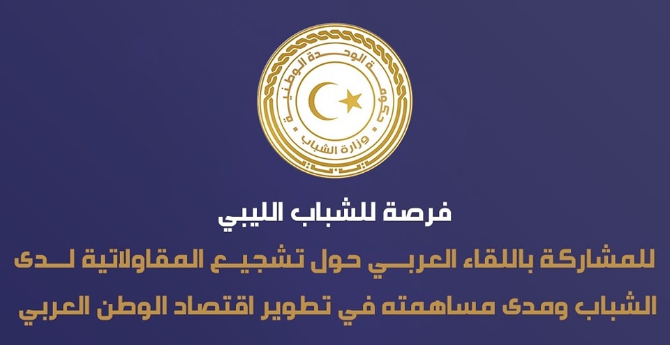 تعزيزاً لأدوار الشباب على الصعيد العربي، تعلن وزارة الشباب عن فرصة للشباب الليبي للمشاركة باللقاء العربي حول تشجيع المقاولاتية لدى الشباب ومدى مساهمته في تطوير اقتصاد الوطن العربي. والذي يستهدف الشباب الناجحين في مجال المقاولاتية أو الراغبين في إنشاء مشروعات صغيرة أو متوسطة في ذات المجال بالدول الأعضاء بجامعة الدول العربية، ويشترط أن يكون عمر المتقدم ما بين 19 سنة حتى 35 سنة.