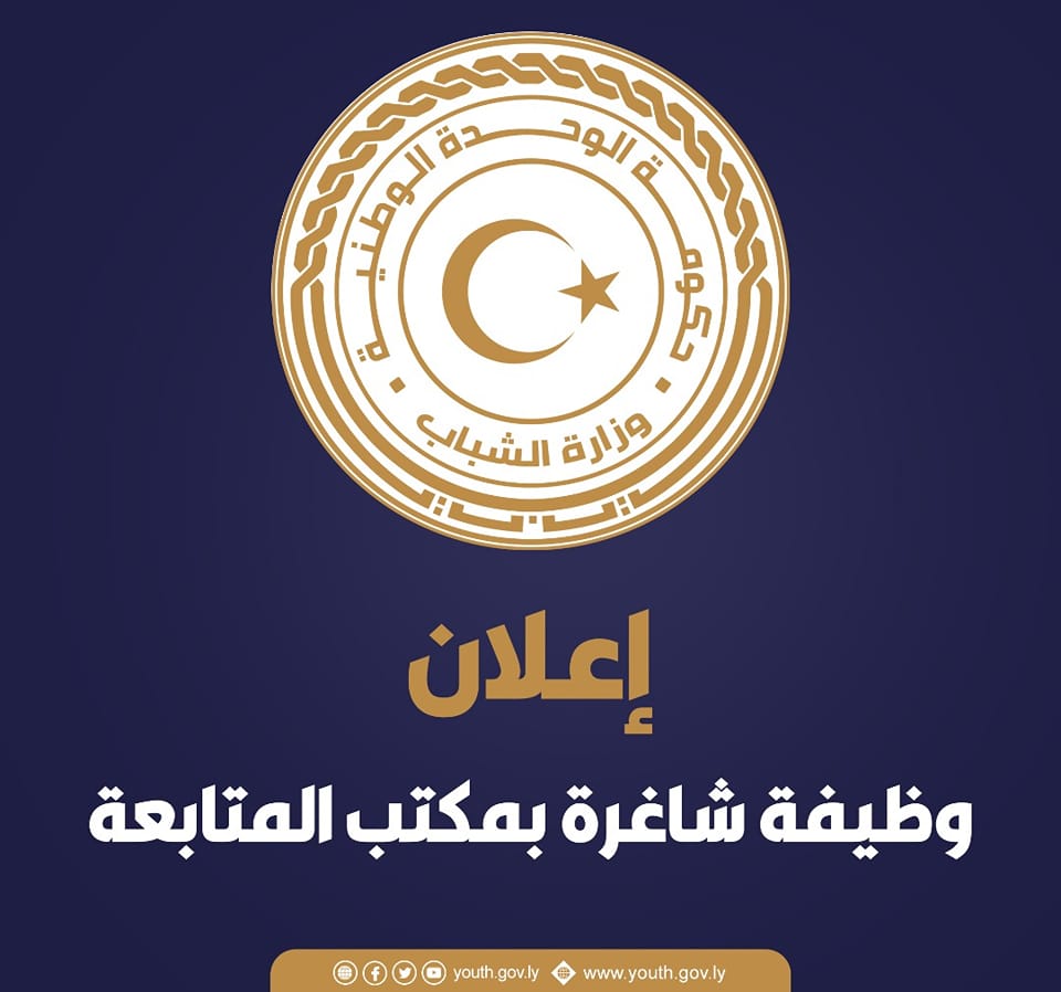 تعلن وزارة الشباب بحكومة الوحدة الوطنية عن حاجتها لموظف مختص بمكتب المتابعة بديوان الوزارة من الجنسين، على أن تتوفر فيمن يرغب في التقدم للوظيفة الشروط الآتية: