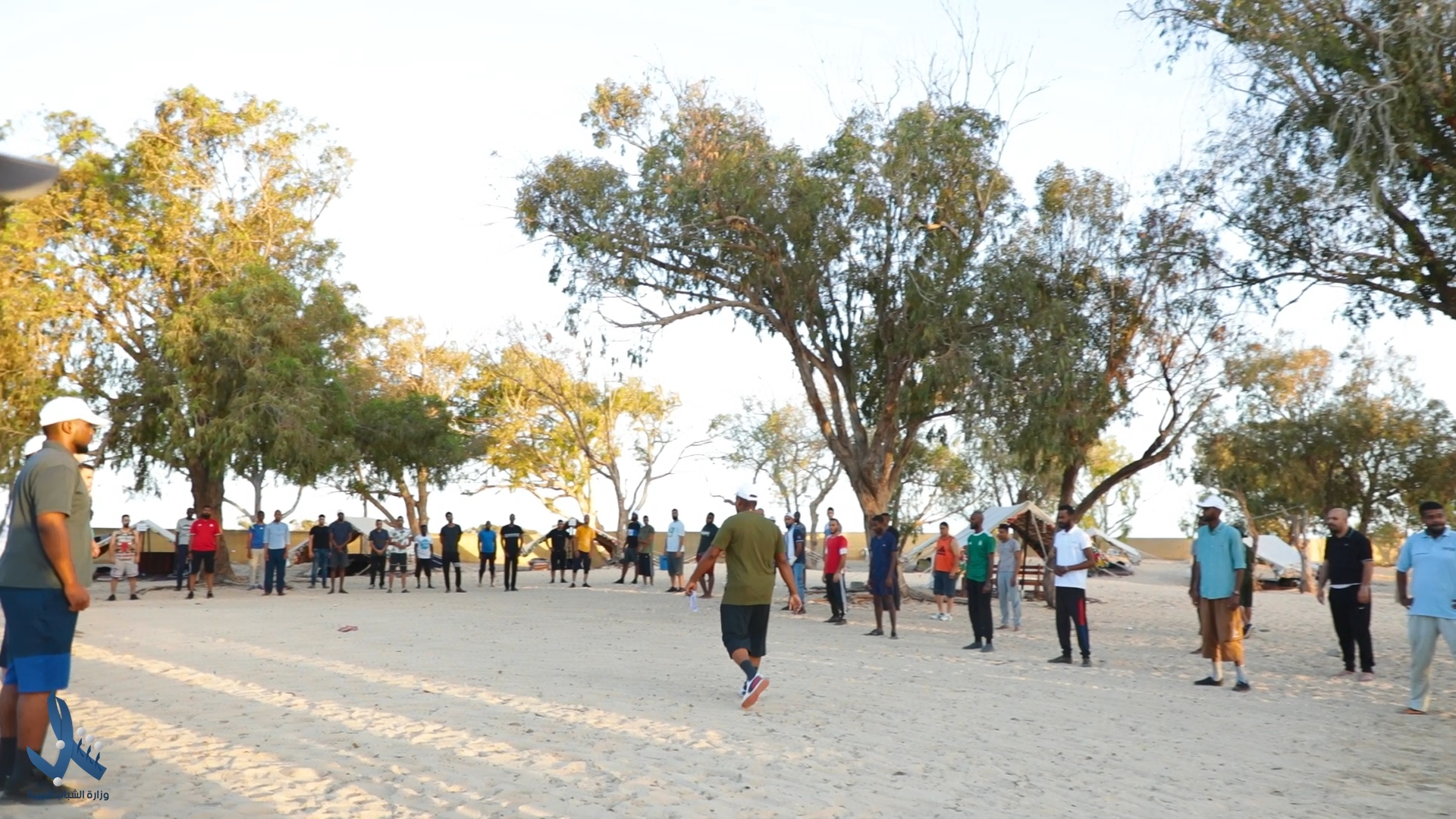جانب من تغطية انشطة اليوم الثاني للمخيم الوطني لإعداد قادة المدارس الصيفية والمخيمات الجبلية الصحرواية والجمع الصباحي ورفع الراية الوطنية وورش العمل التدريبية بغابة بوكشفة زوارة