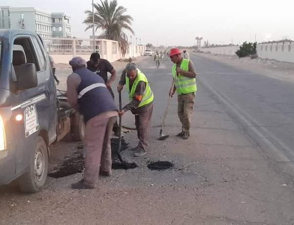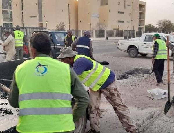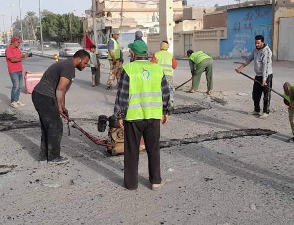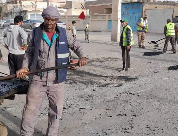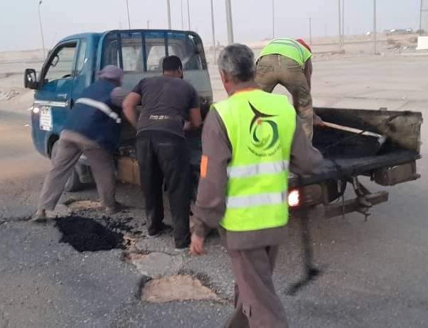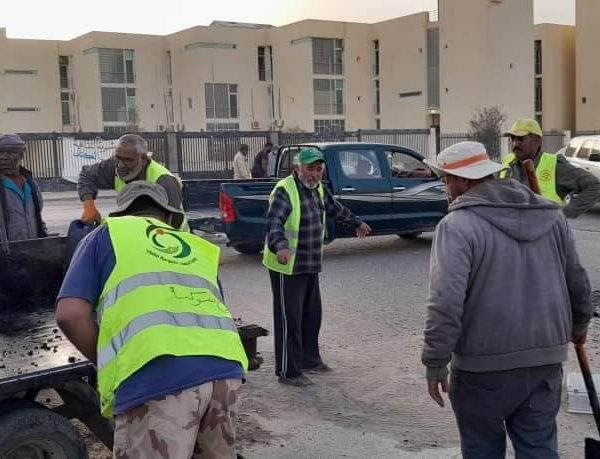 فريق العمل التطوعي” سوكنة” التابع لوكالة الجهود التطوعيه للشباب ومتطوعي العمل التطوعي “هون ” ودان ” بصيانة وترميم طريق الدائري الممتد الي مطار هون وترميم الطرق الداخلية بالمدينة