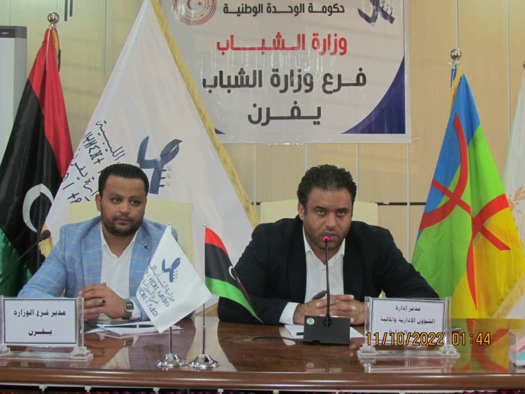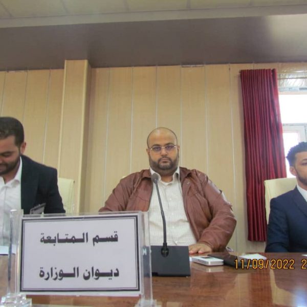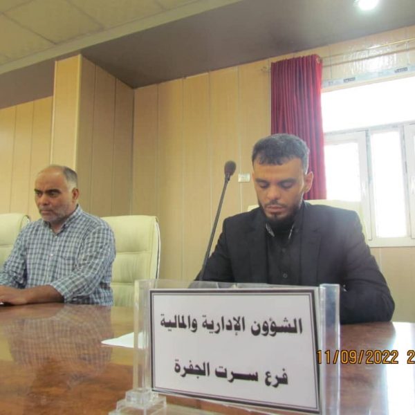 عقد مدير إدارة الشؤون الادارية والمالية السيد “ايمن ابوشهيوة” اجتماع في فرع الوزراة يفرن بالسادة مديري أقسام الشؤون الادارية والمالية على مستوى الفروع التابعة للوزارة في كامل ربوع ليبيا وبحضور موظفي مكتب المتابعة ومكتب المشروعات بالوزارة ومدير فرع الوزارة يفرن