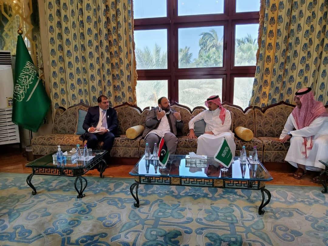 التقى السيد وزير الشباب بحكومة الوحدة الوطنية اليوم الخميس الموافق 8سبتمبر بسمو الامير عبد العزيز الفيصل وزير الرياضة بالمملكة العربية السعوية تزامنا مع انعقاد اعمال الدورة الخامسة لمؤتمر وزراء الشباب والرياضة لدول منظمة التعاون الإسلامي بمدينة جدة -السعودية وأطلع السيد الزني الوزير السعودي على دور الشباب الليبي في مواجهتها التاريخية لمقارعة الاٍرهاب والتطرف وتضحيات شباب الوطن التي سطرها نيابة عن العالم في إجتثاث شأفة الاٍرهاب وأوضح المبادرات الاجتماعية والتنموية وبرامج إعداد الشباب للقيادة والريادة المجتمعية التي قامت بها حكومة الوحدة الوطنية الموجه لفائدة الشباب واتلي انخراط فيها عموم الشباب الليبي من جانبه أشاد معالي وزير الشباب السعودي بالجهود المبذولة من قبل الحكومة الليبية لصالح الشباب والتي تعد نماذج مضيئة في منظومة العمل الاسلامي المشترك في مجال الشباب ،وجارى في هذا اللقاء بحث افاق التعاون المشترك بين البلدين في مجال الشباب وابراز القضايا التي تهم شباب الأمة الاسلامية وتم الاتفاق على توقيع اتفاقية تعاون مشترك بين البلدين خدمة للشباب الليبي والسعودي .