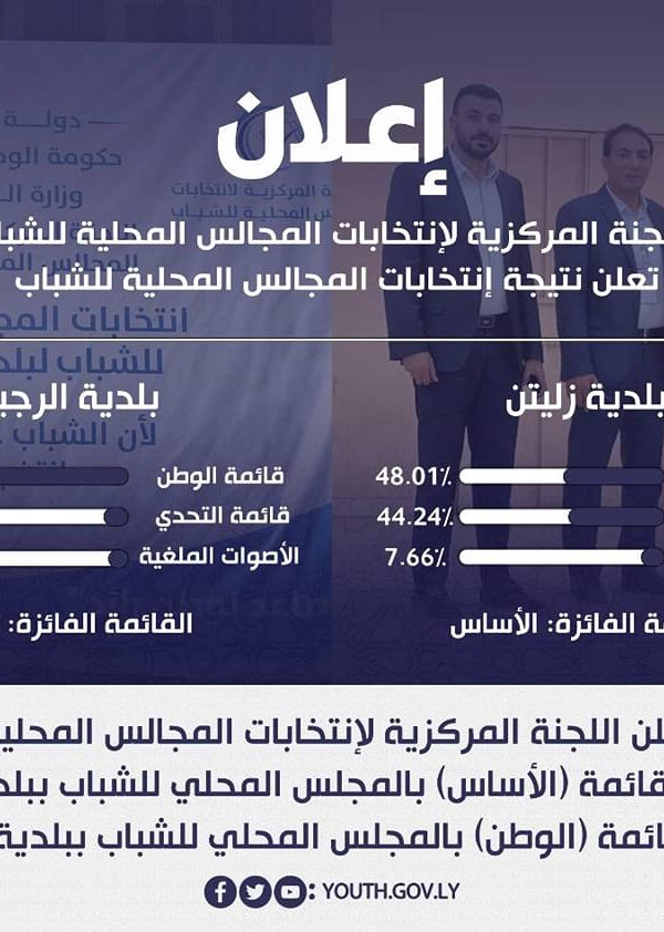 إعلان نتيجة إنتخابات المجالس المحلية للشباب بلدية زليتن الشاطي وبلدية الرجبان