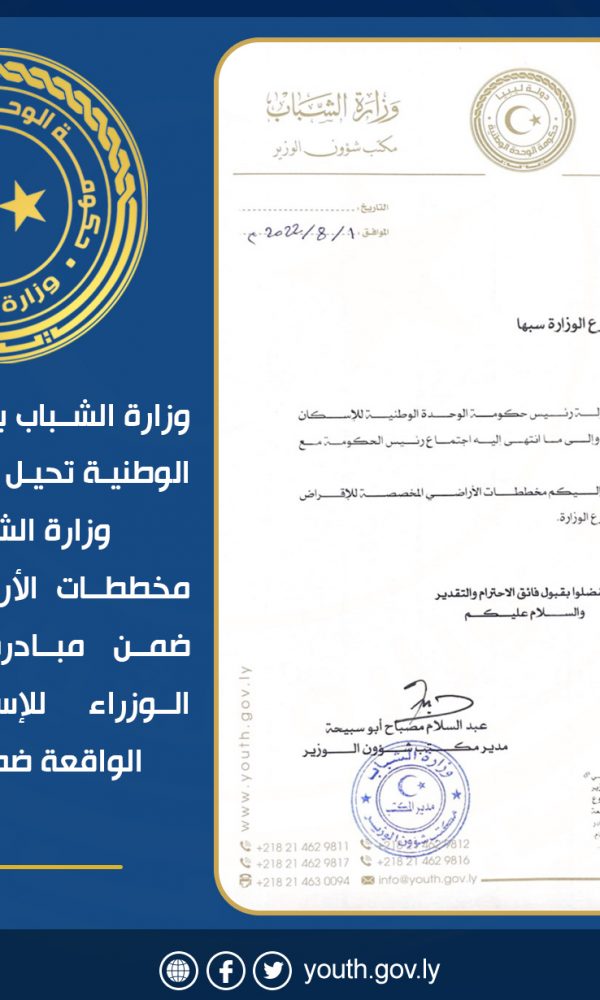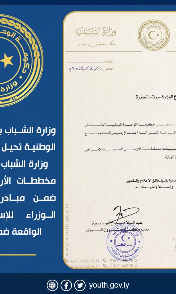 وزارة الشباب تحيل للسيد مدير فرع الوزارة – سرت / الجفرة والسيد مدير فرع وكالة الجهود التطوعية للشباب سرت مخططات الأراضيAsimأغسطس 2, 2022