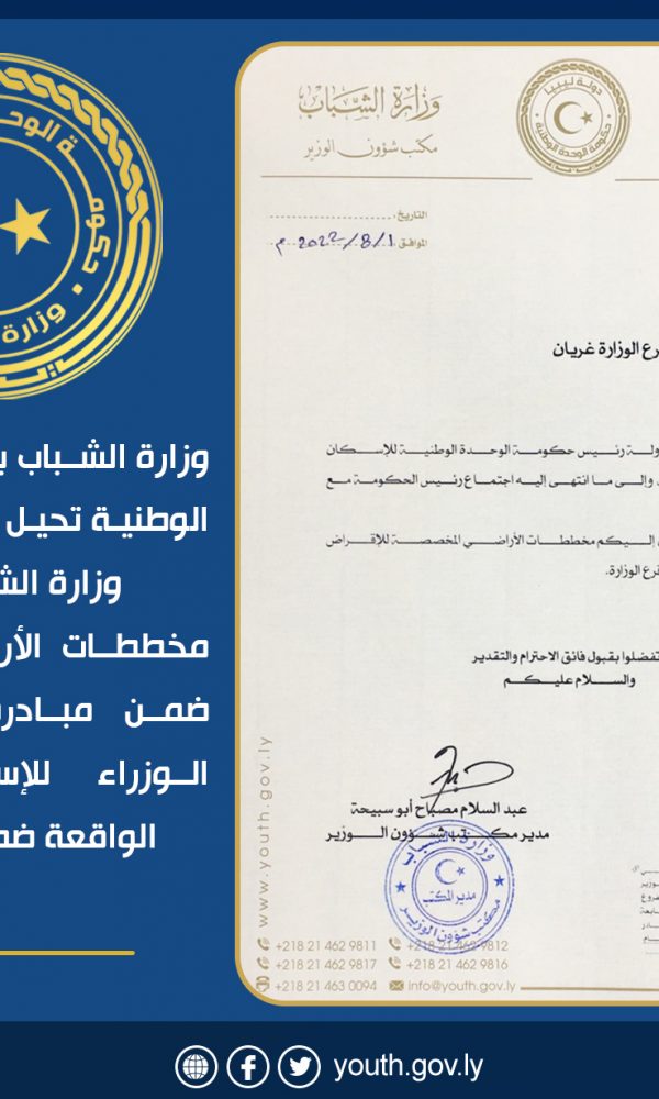 الشباب تحيل للسيد مدير فرع الوزارة الساحل الغربي و السيد مديرفرع وكالة الجهود التطوعية للشباب – صبراتة مخططات الأراضيAsimأغسطس 3, 2022