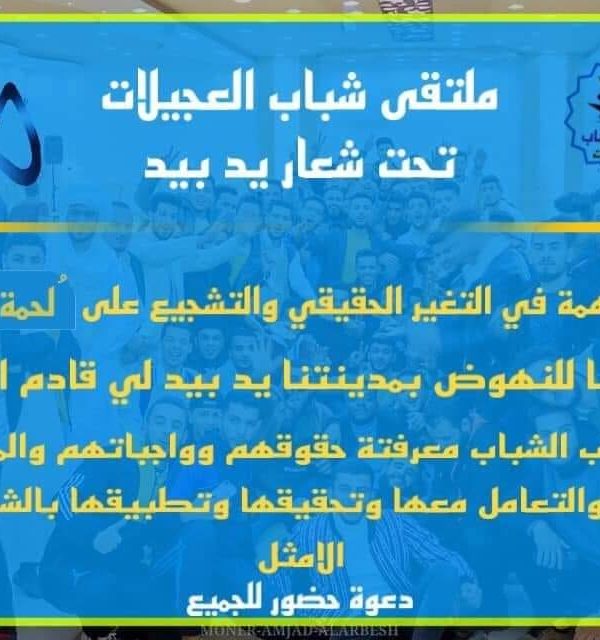 يعلن مكتب شباب العجيلات عن إقامة ملتقي شبابي